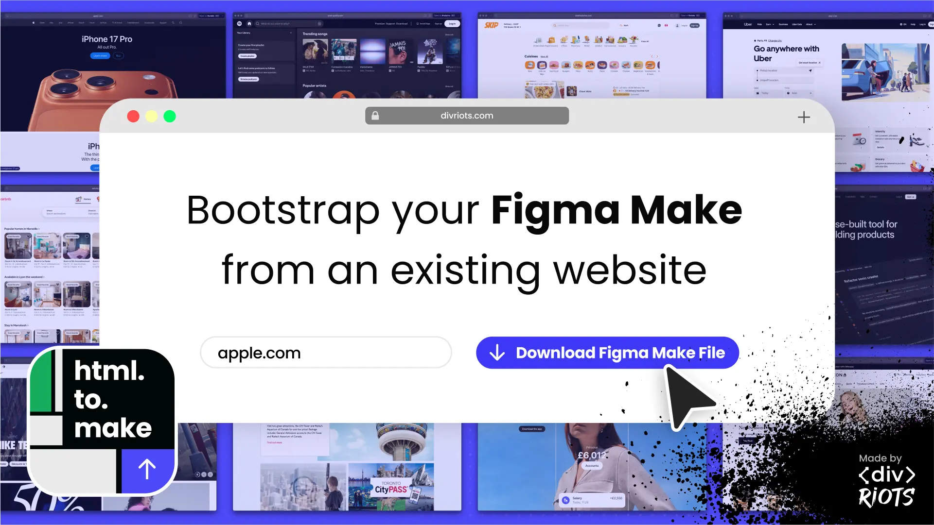 html.to.make is the simplest way to bring any website into Figma Make, Figma’s new AI prototyping tool. Drop in a URL, download the generated .make file, and import it straight into Figma. You’ll instantly have a fully editable prototype to use as the foundation for your Make experiments.
